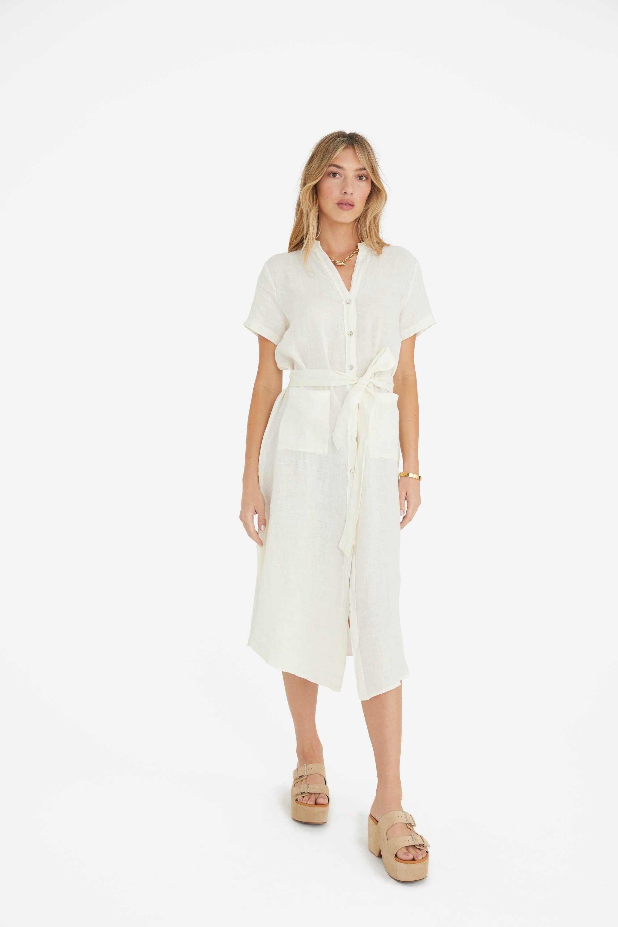 WHITE A-Line Buttoned Split Stand Collar Maxi Dress for wholesale on Faire