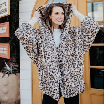 Tan Leopard Lightweight BODY WRAP with Hoodie and Pockets