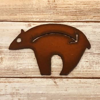 This magnet measures approximately 2.5"x1.75" with a strong 1" ceramic magnet on the back. Made from 3/16" thick maple veneered wood in our solar powered Santa Cruz, California workshop. Every product we create is made from 100% sustainably harvested, American grown wood. Our magnets are very strong and will have no problem securing your favorite photos to the fridge :) This product is great for stores that feature Brown Bear, Alaska, Montana, Colorado, and Rocky Mountains. We also offer this design as an ornament and keychain! This design was drawn by me. It's not clipart so you'll only find it in our store :) Please note - every wood item is unique and colors and grain can vary from piece to piece.