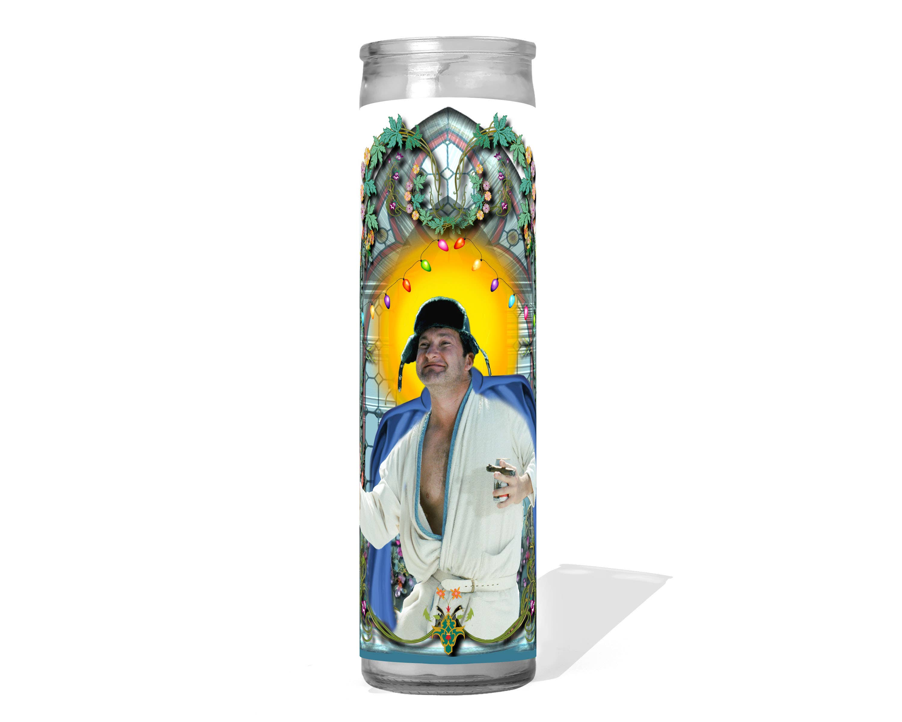 Saint Macaulay Culkin, Patron Saint of anyone who is "Home Alone" this Holiday Season and year round! Saint Celebrity Prayer Candle. White wax. 8 Inches Tall. Glass Container. High Quality Gloss Vinyl Label.