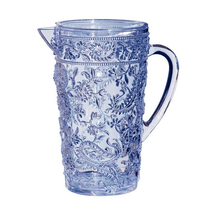 Item# AC-0047 Capacity: 1.75 QT Material: Acrylic UPC# 714289907287 ITEM# TR-0047 UPC # 714289907287 Capacity: 1.75 QT Material: TRITAN Unit Size: 10"H x 4.88"W Case pack : 6 pcs. Case size: 16"x11"x11" Case weight: 6 lbs Made in Taiwan A perfect addition to your houseware collection. This beautifully crafted pitcher allows one to serve any type of drink. BPA Free!