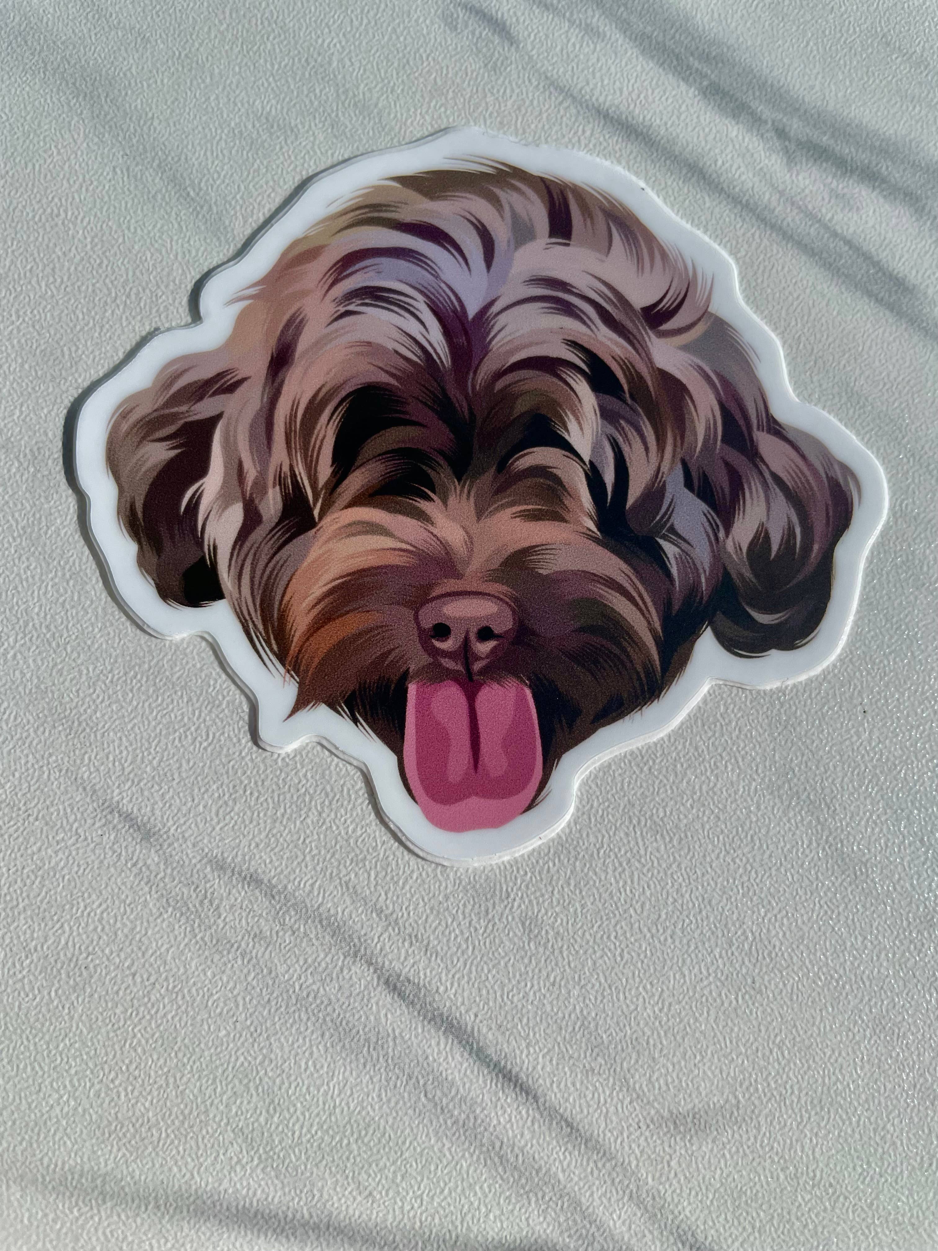 Labradoodle Dog Sticker. Great to decorate water bottles, laptops, phone cases, coolers, car windows, journals, notebooks, planners, bikes, skateboards, kayaks, and more. This sticker is a great gift for any Labrradoodle owner! Designed by Sigrid Forsythe IG: @Sig_Fae Copyright Big Moods Details: •3 x 2.49 inches • Made in the U.S.A. • High quality and durable vinyl, indoor and outdoor use • Waterproof and weatherproof *Big Moods stickers make excellent stocking stuffers for Christmas and other holidays