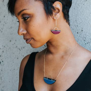 14k gold-filled circle, webbed with brass and filled with handmade paper, hand-dyed with an ombre effect and coated in resin to waterproof and harden it. 14k gold-filled ear-wires on the 14k gold-filled circles. Inspired by ancient Nordic design and the sun on the ocean in the Pacific Northwest. The circles are 2.5 inches across. Overall length is 3 inches.