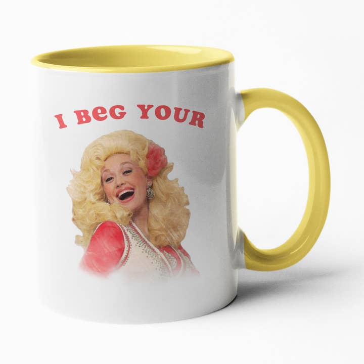 Dolly Parton - Caffeine, Caffeine, Caffeine, Cafeeeeeeeine Coffee Mug - To The Tune of Jolene Available in White and Pink. 11oz./15oz. Ceramic Mug. Dishwasher Safe. Microwave Safe.