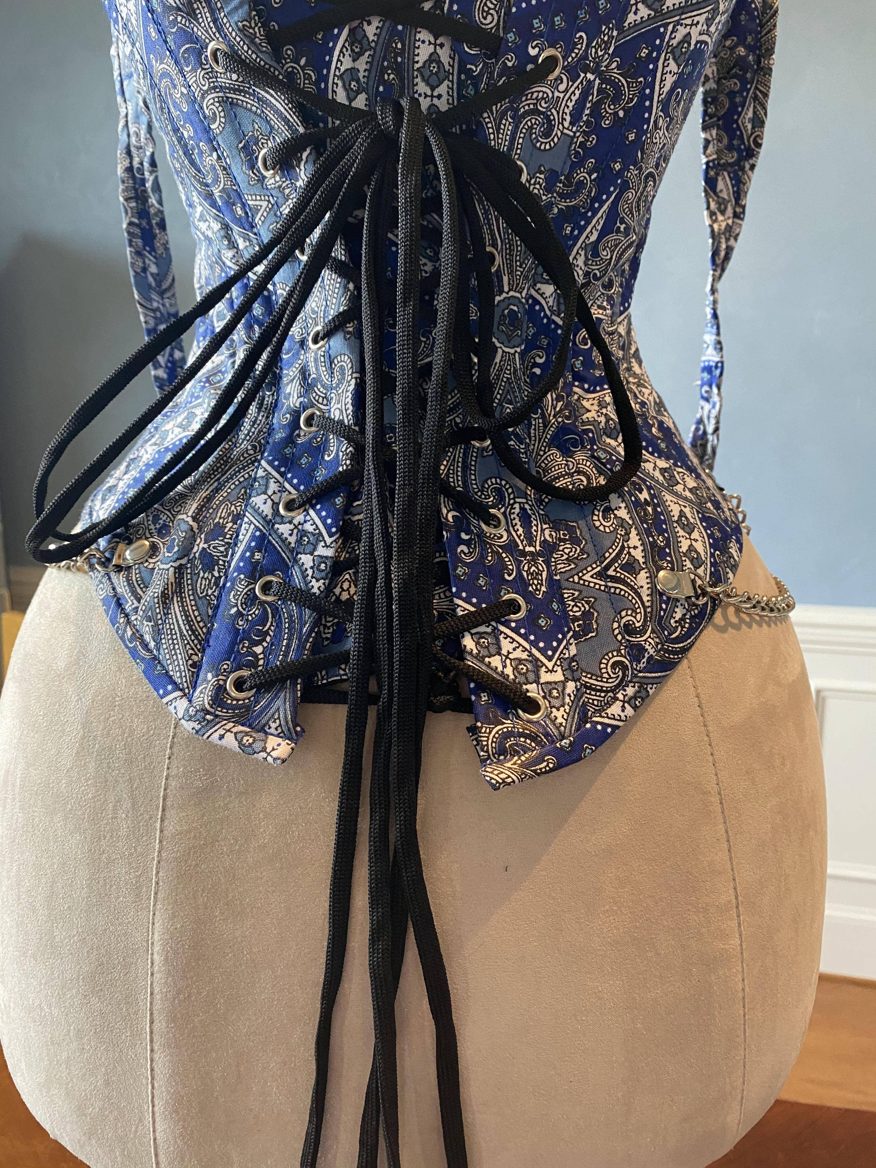 Historical velvet corset: Edwardian overbust corset. Main material: velvet Inner materials: 100% thick cotton, corset lining materials. Length of corset 15″ Each corset has its own individual cover. The size of the corset reveals real measurements of the waist of the corset when it is mostly tightened. The back of the corset has 5,5 inches of modesty panel. Corset gives up to 15 cm tightening, so choose size minus at least 2-3 inches from your real waist sizes (we recommend 4 inches). After you place an order send us your natural measurements for custom size. Waist of corset in fully closed condition, please choose custom size if you don't know how to choose correct size of corset: 20" - 2XS 22" - XS 24" - S 26" - M 28" - L 30" - XL 32" - 2XL 34" - 3XL 36" - 4XL 38" - 5XL Our Regular sizes are created for middle regular body types.