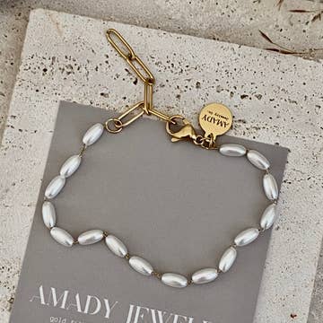 This bracelet comes in your choice of 16k white or yellow gold plated over brass. Mix and match the chain and charm color of the plated metals for a unique look! The cover image shows a 16k white gold charm on a 16k white gold chain. Each bracelet is 5.5" - 7.5" long.