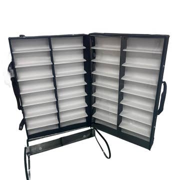 Introducing our sleek sunglass storage organizer - a compact and lightweight solution for your eyewear collection. Crafted with a beautiful wood grain finish in a rich walnut color, this organizer exudes style while providing practical storage. Designed with portability in mind, this organizer is perfect for travel or daily use.