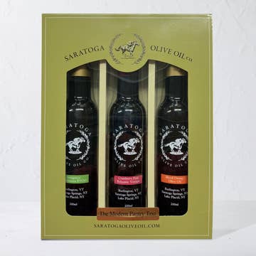 Our Gourmet Gift Set contains our signature Organic Extra Virgin Olive Oil, 25 year cask-aged Balsamic Vinegar Cask from Modena, Italy and two Pour Spouts. What's great about this gift set is it comes in a beautiful box, it's elegant and useful for the foodie, and it makes the perfect hostess gift, birthday or Mother's Day gift.