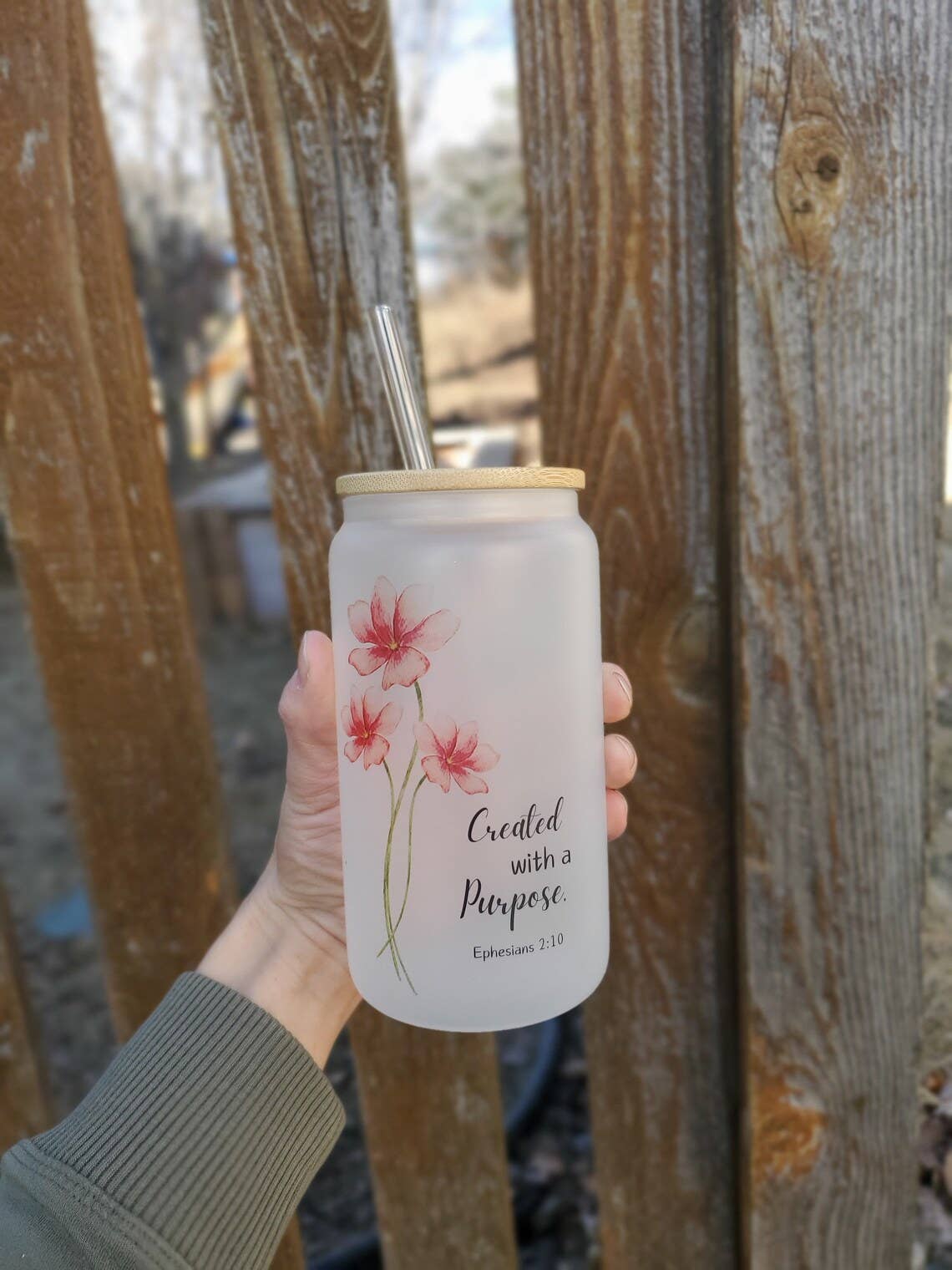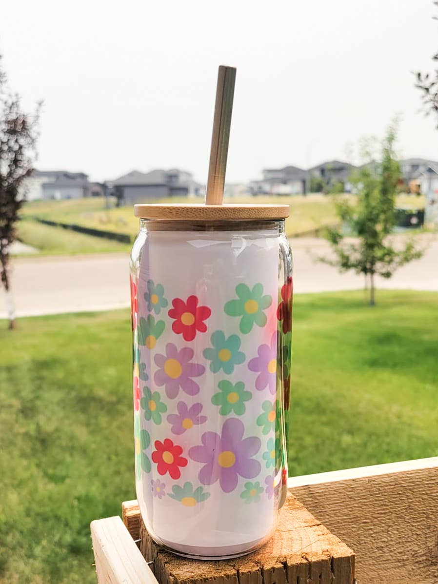 This glass can is perfect for iced coffee, tea, lattes, sparkling water, or your favorite cold drink. ★Product Specifications★ • The design is sublimated on so it won’t crack, peel or wash away! • Stylish, reusable, and sustainable. • Bamboo push on lid + Straw • 16oz ★Please Note★ Handwashing is recommended to preserve the longevity of the ink. Only place in top rack of dishwasher on low heat cycle. ★Custom Designs★ If you would like to see this design on a different product or would like changes made to the design please send us a message and we will try to accommodate! Some custom orders may require an additional artwork fee. ★Questions?★ Drop us a note we love to chat