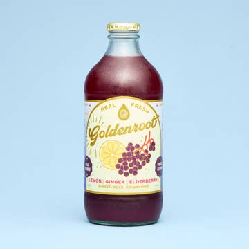 KEEP REFRIGERATED Finally, a delicious beverage that gives fresh ginger the starring role it deserves, paired perfectly with the zest of freshly squeezed lemon. Goldenroot is not just a drink, it’s an experience. A handcrafted, sparkling ginger elixir that’s as delicious as it is good for you. We’ve stripped away the artificial and over-processed, creating something entirely new: a premium fresh ginger beer, made with the finest ingredients. 100% Real & Fresh, we've unlocked the secret to enjoying ginger like never before. Goldenroot upends everything you know about this ancient super root. We're bringing the revitalizing power of fresh ginger to the people. Our Elderberry is fresh, juicy and sweet! ✅ Functional benefits from real, fresh ginger, supporting digestion & immunity ✅ Better-for-you & Better tasting soda option ✅ A natural alternative to sodas & juices ✅ Perfectly refreshing on its own & complex enough to mix into a cocktail KEEP REFRIGERATED