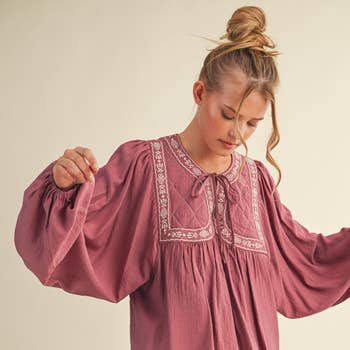 Oddi - Wholesale Blouse - Women's - Lace& Plaid Combo Long Sleeve Blouse8
