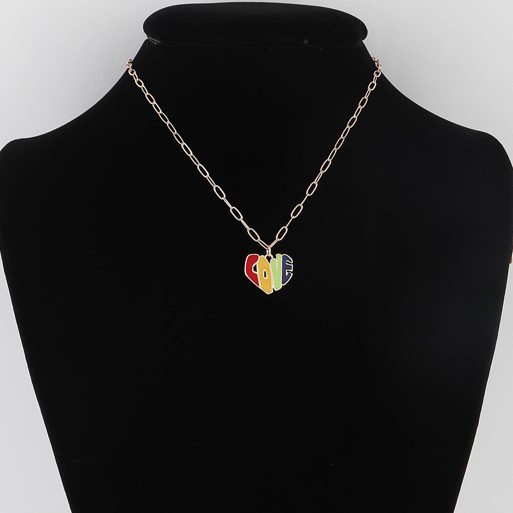 Rainbow Ribbon Cable Heart Necklace