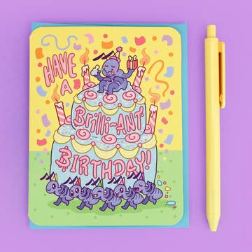 A2 folded card paired with an envelope, packaged in a clear cello sleeve. Blank inside. Our greeting cards are hand screen printed by us and feature our hand drawn illustrations. Due to their handmade nature, there may be very slight variations between the item pictured and the one you receive.