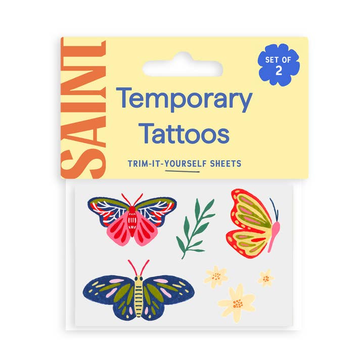 Watercolor Spring-themed temporary tattoos. Bunny, flowers, carrot, and 6 painted eggs. Easily cut them apart for 4+ separate tattoos, or apply all at once for one big tattoo! Perfect for any Easter basket - or for decorating Easter Eggs! DETAILS: Set of two temporary tattoo sheets Dimensions: 1.5" x 3" Safe, non-toxic, and FDA compliant Printed in the USA Our temporary tattoos last about 1-5 days, depending on the size, placement, and care of the tattoo. Temporary tattoos last much longer when applied in an area that isn’t rubbed often. For the best application of your tattoo, be sure your skin is dry, and free of oil, lotion and makeup, since temporary tattoos apply best to clean, dry skin.