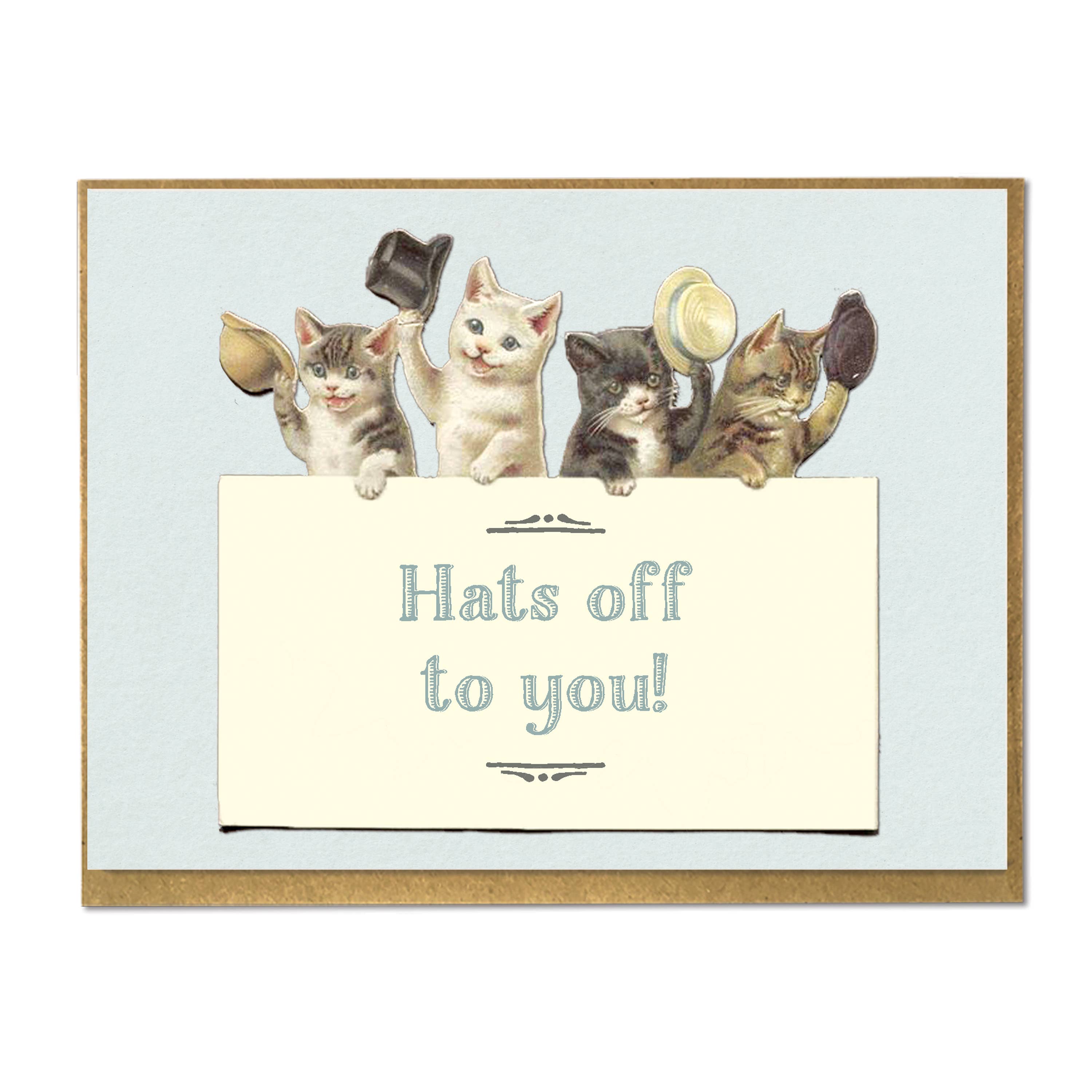 Hats Off to you! Congratulate your fashionable friend for that really awesome thing he or she did. A2 size card. Blank on inside. Made with love and printed in Brooklyn. Comes with kraft envelope.
