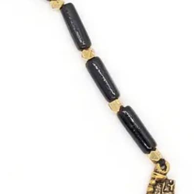 Wood beaded arrow necklace. Handmade by a young designer and team of artists in Northern India.