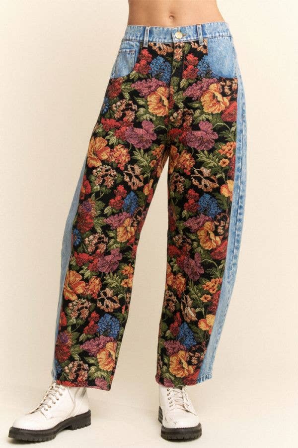 Bring effortless charm to your outfit with these floral patchworks relaxed fit pants crafted in classic denim. Designed for comfort and style, they feature a laid-back silhouette complemented by a stylish rolled-up detail at the hem. Perfect for adding a playful, vintage-inspired touch to any casual outfit. * MATCHING SET: GWT333 Specs/Dimensions: - WAIST: 13-3/4" - RISE: 12-1/2" - INSEAM: 28"