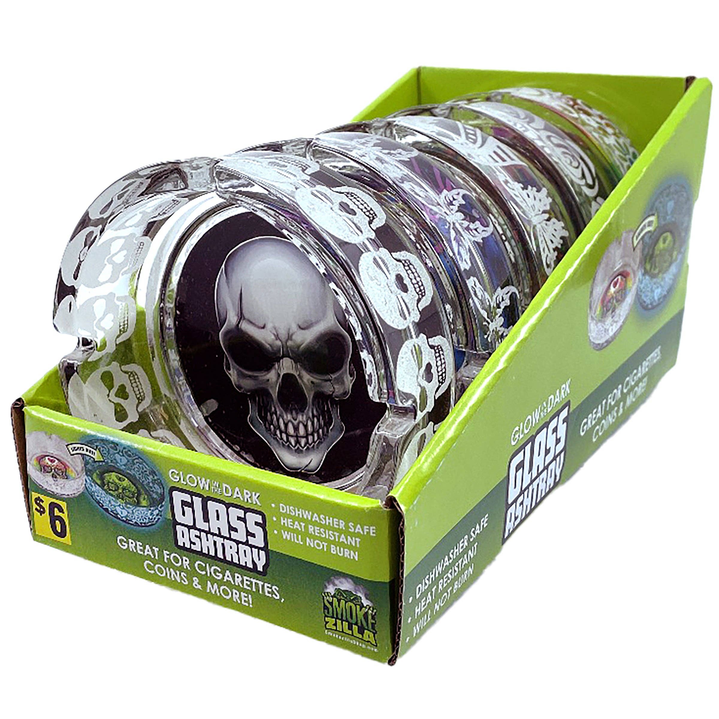 Smokezilla Glow In Dark Glass Skull Ashtray - 6/Display
