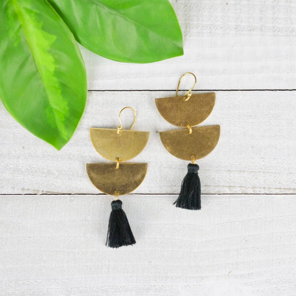 Wood & Brass Half Circle Dangle Earring Gold Charm Hoop