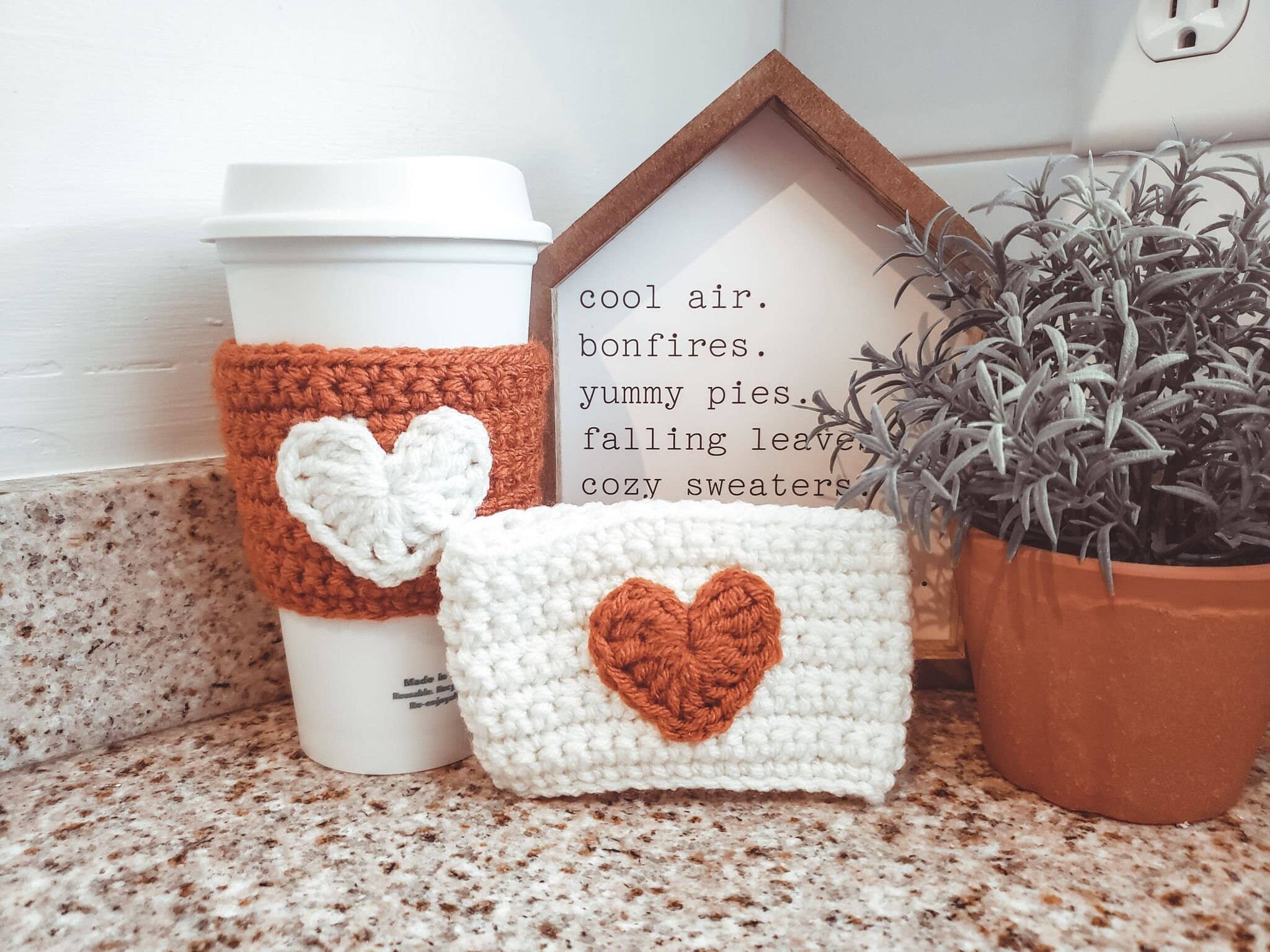 Crochet Tiny Heart Cup Cozy, Coffee Sleeve, Valentine Gift 🔆 Tiny Heart Cozy will make an excellent Valentine's Day gift! ☀Measurement: approximately 4"x4".