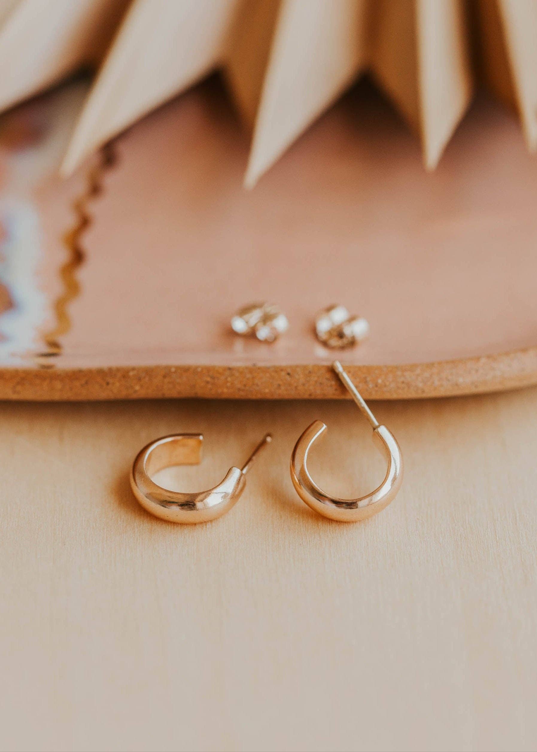 The perfect, minimalist tiny hoop earring - features a stud back for easy removal while still achieving the "huggie hoop" curated look! Materials: Sterling Silver, 14k Gold Filled Hypoallergenic • Waterproof • Non-Tarnish Available in two sizes: Large (10mm diameter) or Small (8mm diameter) - 20 gauge wire