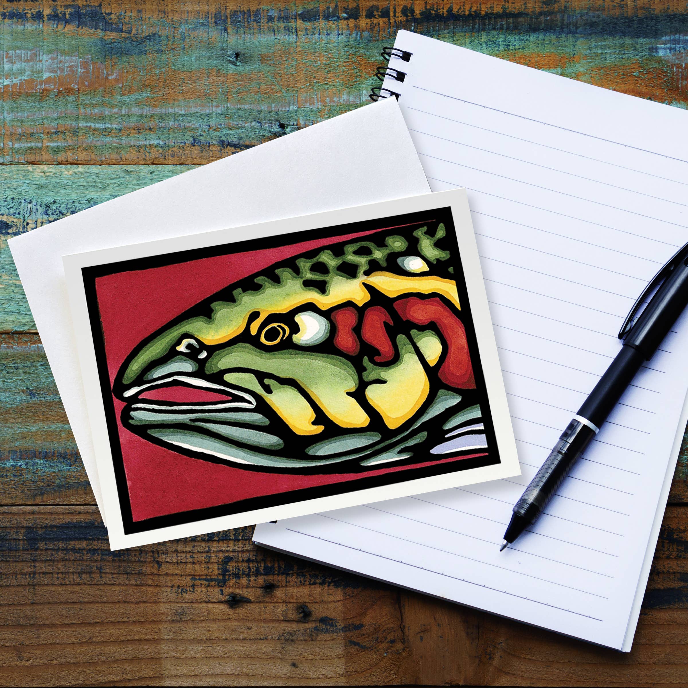 We're "hooked" on redfish down in the Louisiana marsh! • flat shaped card is letterpress printed in deep orange ink on 100# pale pink paper • measures approximately 9.125”x3.5” • die cut in our studio, cut to hold a gift card, money, tickets, or a love note • accompanied by a #10 green envelope and packaged in a clear sleeve Tell someone special you're hooked on them!