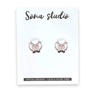 One sheep is good, one sheep isn't. You'll never guess which is which. All earrings are made with hypo-allergenic, nickel-free titanium posts.