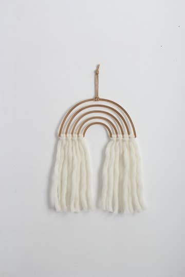 Featuring a brass or wood rainbow design, paired with knotted 100% Peruvian wool yarn fringe, so soft to the touch. Our metal products start as our original hand or digitally drawn designs, that are laser cut out of metal or wood and finished by hand.