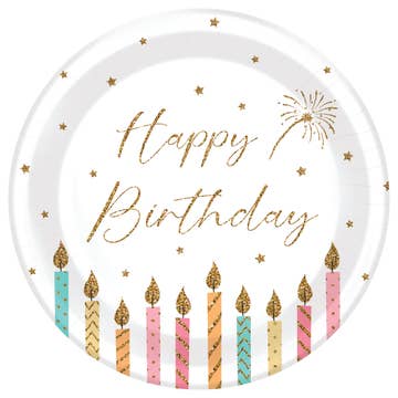 Sprinkles Pastel Happy Birthday Large Paper Plates - 18 Pack