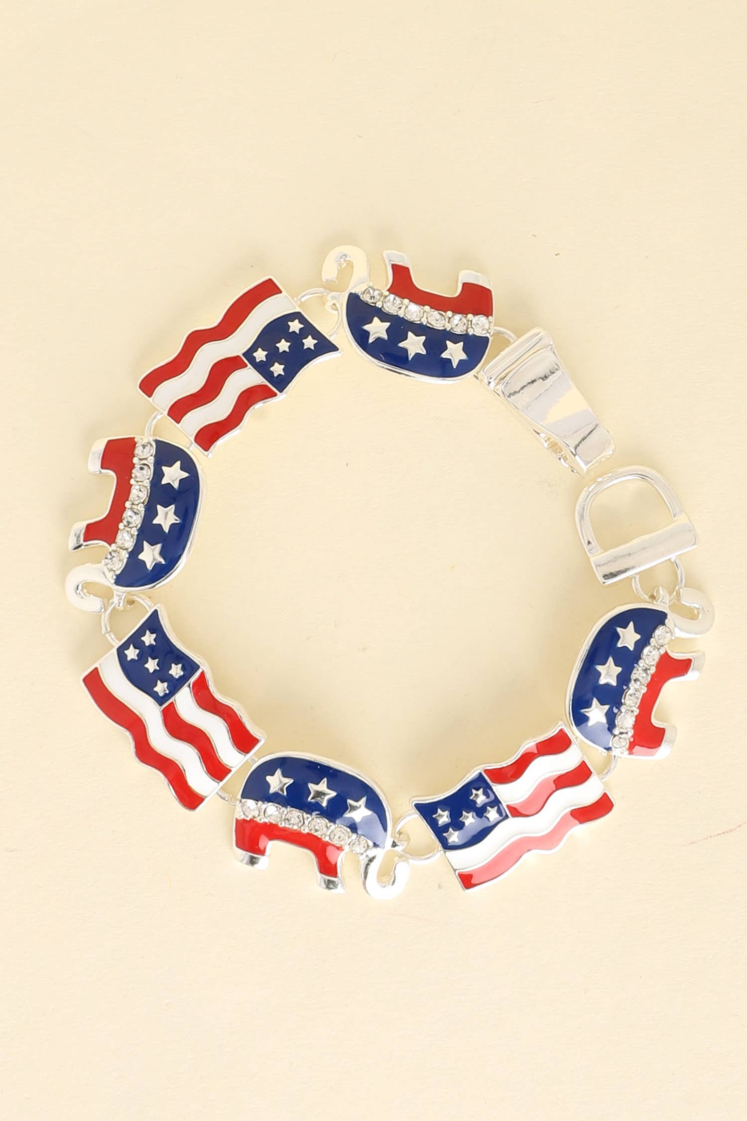 American Bangle Patriotic Flag Star Charm Coil Bracelet Non-Stretch - Approx. 2.5"(inner) wrap around to wrist Bracelet should fit most small to medium wrist teen or woman Wipe clean, keep away from liquid. Color - Red White Blue