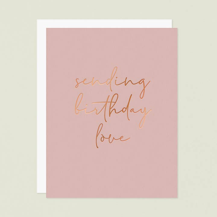 Send sympathy and love to someone going through a difficult time. A2 size (4 1/4" x 5 1/2" folded) • blank interior • letterpress printed on heavyweight FSC cardstock • rose gold envelope • packaged in a clear sleeve