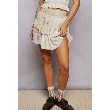 PLEATED LOTUS SOLID COLOR ELASTIC WAIST SKIRT