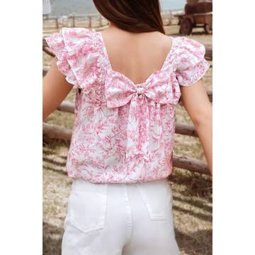 Floral Ruffled Short Sleeve Square Neck Bow Back Blouse
