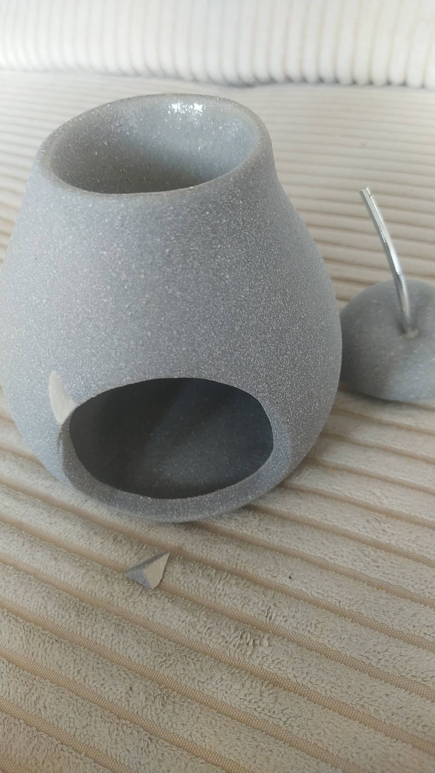 Belle Hélène pear-shaped ceramic burner. Matt cement and pleasant touch Very easy to use, lift the lid by the shaft, put in your waxes, scented melts, scents, essential oils or other scented solutions. Using the heat of a tealight candle (candle not included), the scent escapes after a few moments. Put the lid back on when not in use and it will make a beautiful decorative object Our incense burners should be used with tea lights that are 4 cm in diameter and have a maximum burning time of 4 hours. The candle must meet current standards. Also, be sure to respect the safety instructions indicated on the candle.
