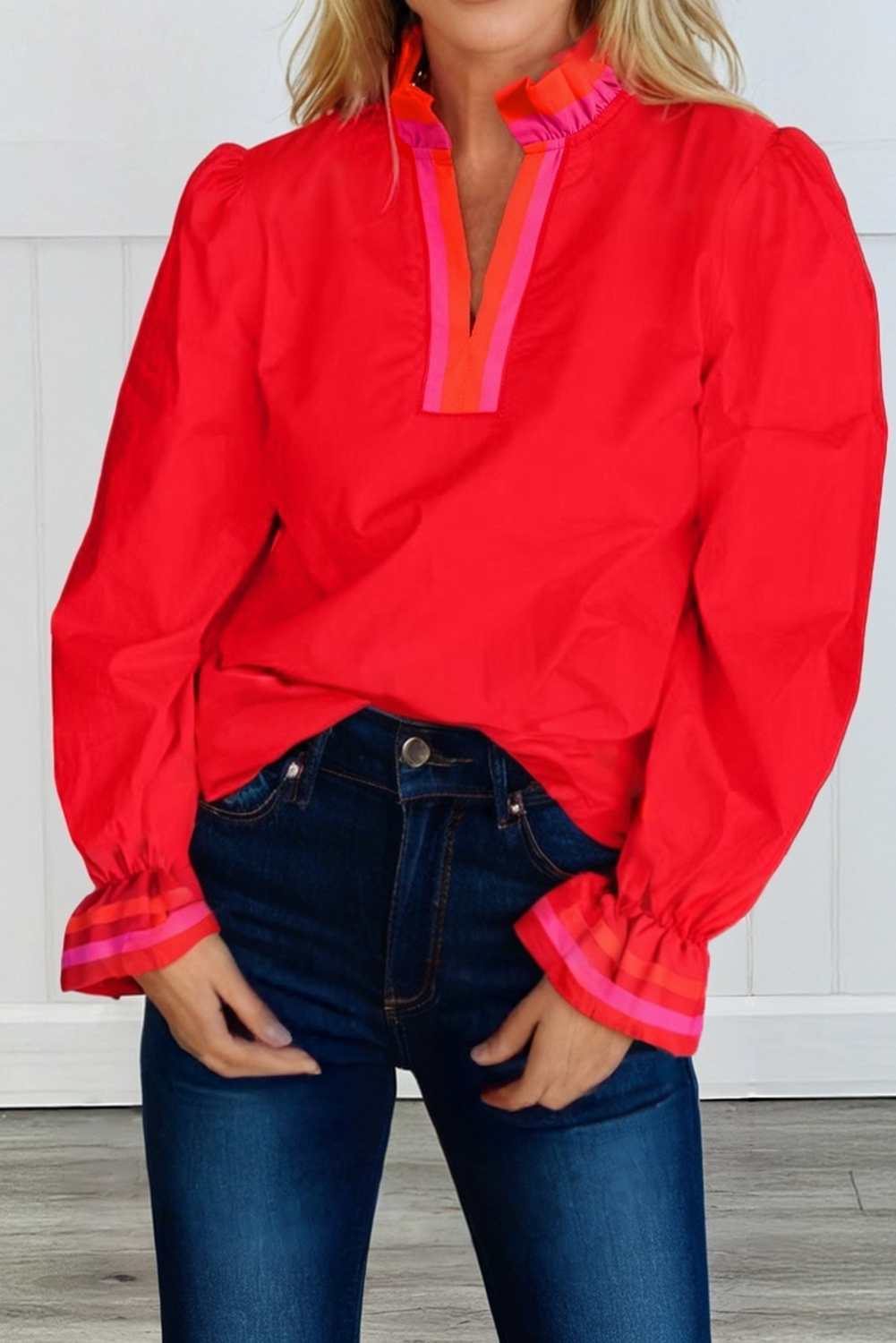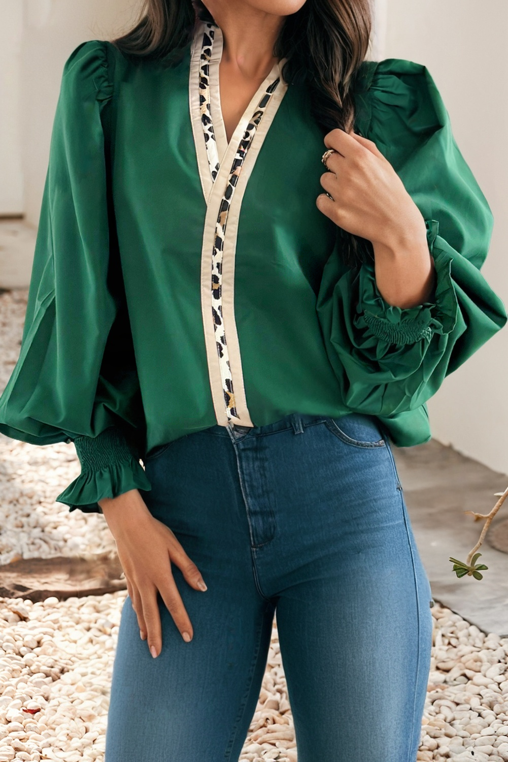- Round split neckline - V-Shape - Bohemian floral embroidered detail - Ruffled long balloon sleeve with elastic trim - Flowy silhouette - Hip length - Curved hem - Embroidered on neck-line front and sleeve - Comfortable, Relaxed fit - Casual loose bohemian embroidered tops are perfect for pairing with denim shorts, skirts, slacks, pants, or jeans. - Perfect for all kinds of event occasions, lovely floral detail embroidery is elegant and generous. - Mother's Day, Cinco de Mayo, Halloween, Christmas, Easter. - Every Day, Work. * Styled with VP81178, VP83031 * Model is 5'8, 32-27-37, wearing SMALL
