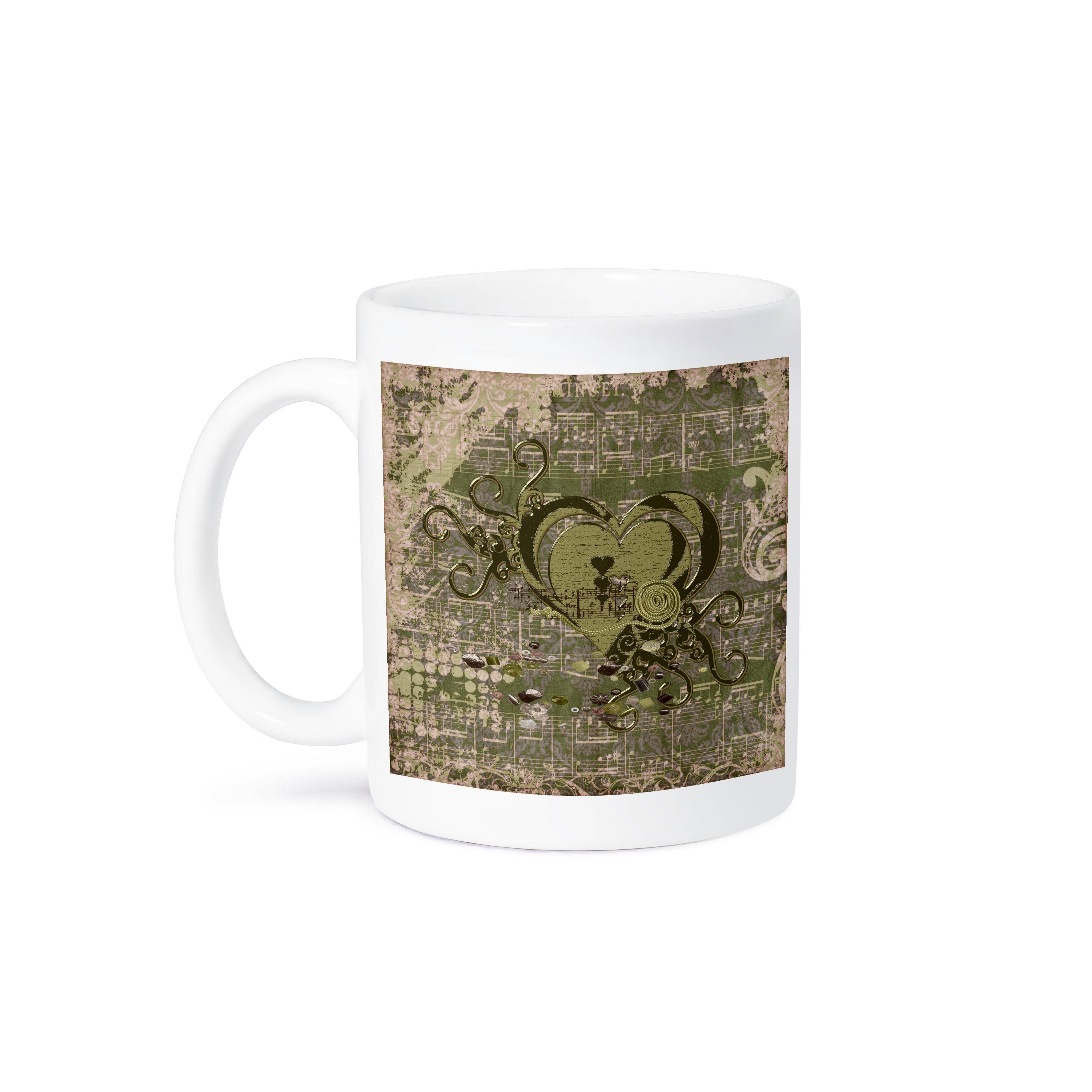 Pottery, green w/raised claddagh desing & "friendship, loyalty, love" on reverse, 20 oz, boxed.