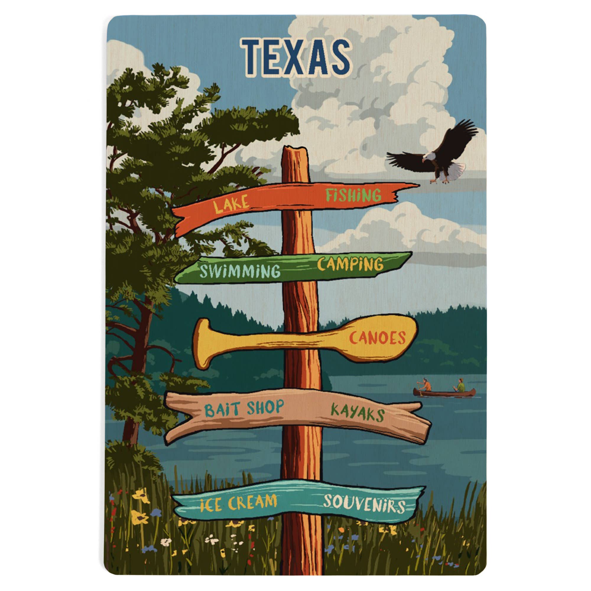 Texas State Map Wooden Postcard