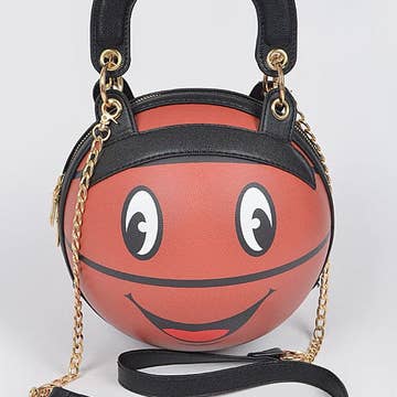 * Smile Top Handle Basket Ball Bag * 8W*8H*8D * Polyurethane,Mixed Metal