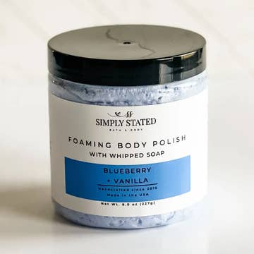 Made in United States Beauty Concerns: Exfoliating and Hydrating Fragrance Notes: Vanilla Ingredient Preferences: Paraben-Free, Phthalate-Free, and Sulfate-Free Product Language: English Ingredients: INGREDIENTS FOR SCRUB: sugar cane, distilled water, sodium cocyl isethionate, glycerin, cocamidopropyl betaine, organic & fair-trade Shea butter, emulsifying wax, cocoa butter, organic castor oil, organic argan oil, stearic acid, fragrance, optiphen plus, lotus flower extract, & pineapple powder. (Please keep in mind, different scents have different botanicals and/or essential oils) WHIPPED SOAP INGREDIENTS: Distilled water, sodium cocyl isethionate, glycerin, cocamidopropyl betaine, organic argan oil, organic castor oil, stearic acid, fragrance, lotus flower extract, optiphen plus, mica and/or natural colorant. (Please keep in mind, different scents have different botanicals and/or essential oils.) Weight: 70.87 g (2.5 oz) Dimensions: 5.1 x 5.1 x 7.6 cm (2 x 2 x 3 in) Product Materials: Vegan Packaging: Recyclable Production: Cruelty-free, Ethically sourced, and Fair trade