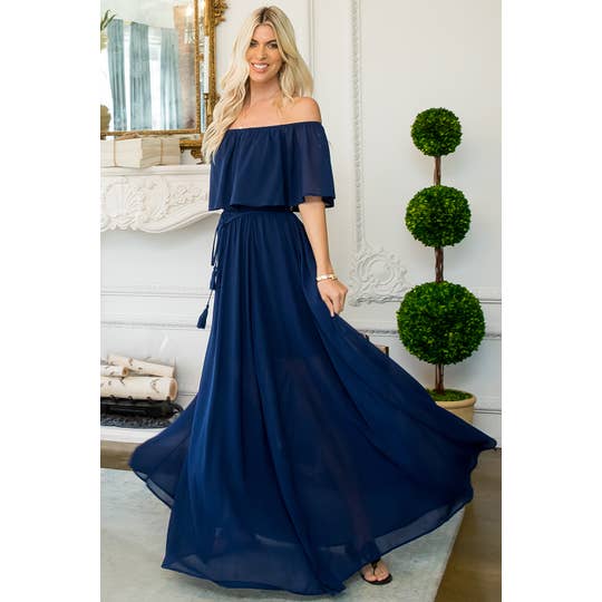 SD5149 STRIPE OFF SHOULDER MAXI DRESS