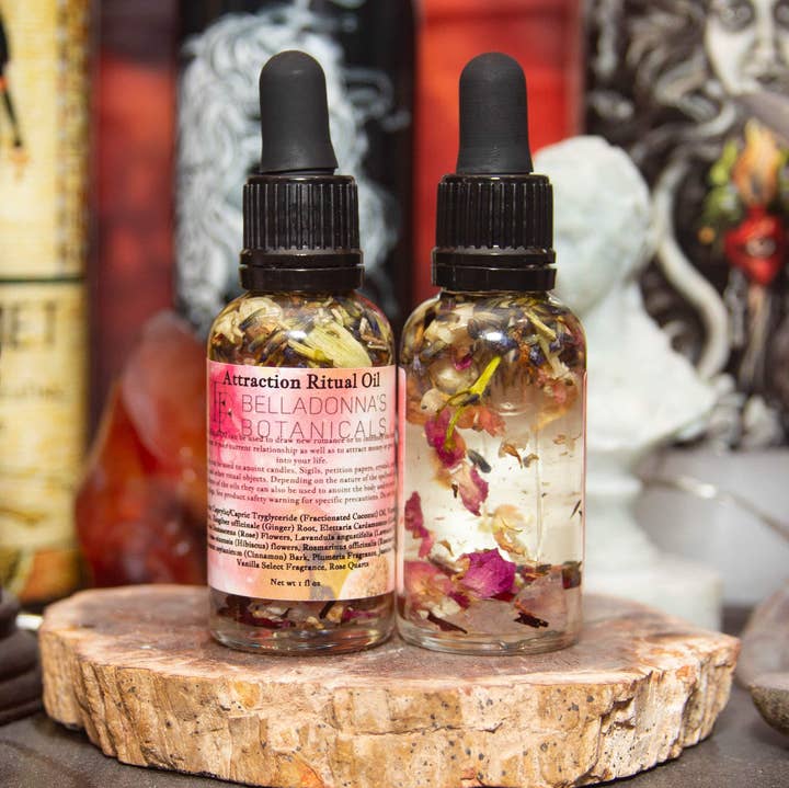 Ritual Oil Purpose or Intention Love Obsession Oil is a powerful attraction oil with a spicy slightly floral aroma. Its purpose is to make the object of your desire obsessed with you in thoughts and actions. Our Creation Process Belladonna’s Botanicals Ritual Oils are created to be used by anyone regardless of skill level or tradition. For that reason, we do not include specific spells or rituals because everyone's practices are different. We encourage you to find spells and rituals that suit your needs online via Google or YouTube or in any witchcraft related books you may have on hand. Each oil is handcrafted infusing botanicals, herbs, essential oils, fragrances, and other materials in a carrier oil and imbued with magical energy.