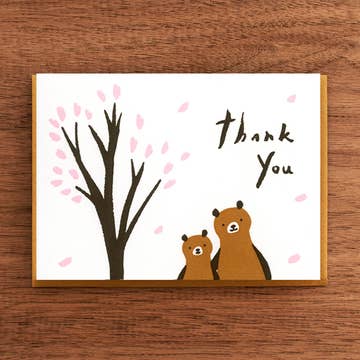 Letterpress Thank You Card: Bear Among Leaves