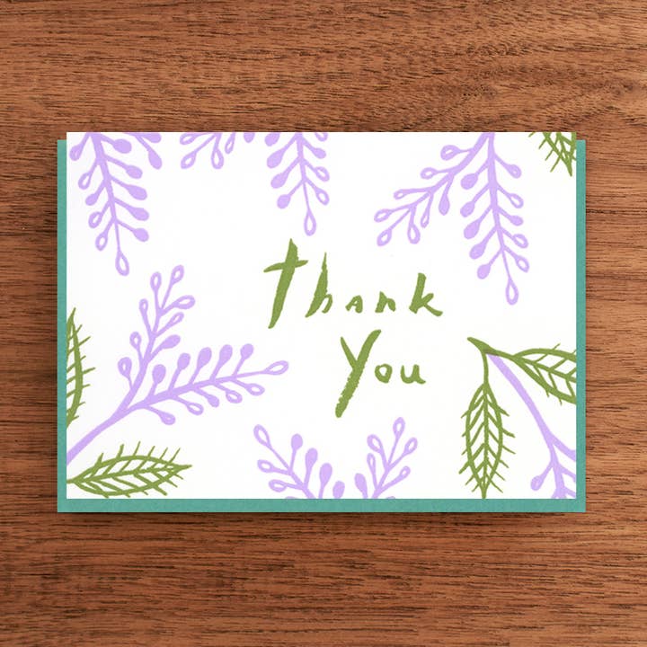 Each card is individually pressed on a vintage Vandercook flatbed cylinder press onto 100% pure cotton paper. Sleeved with green envelope.