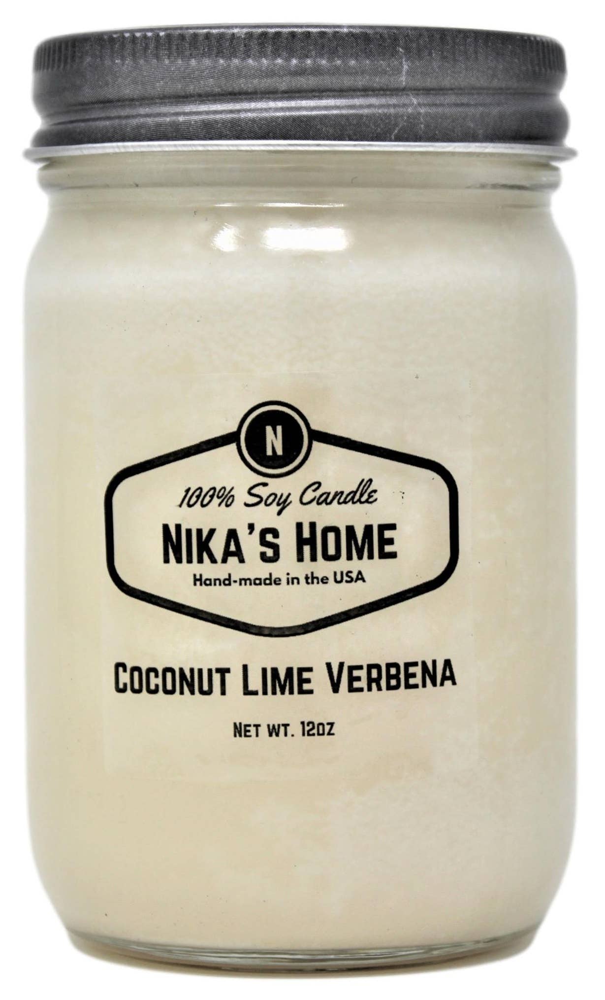 Made in United States Burn Time: 50-60 hours Flame Type: Flame Fragrance Family: Fruity Handmade: Yes Material: Glass Number of Wicks: 1 Size: 12 oz Wax Type: Soy Wick Material: Natural fibers Weight: 0.66 kg (1.45 lb)