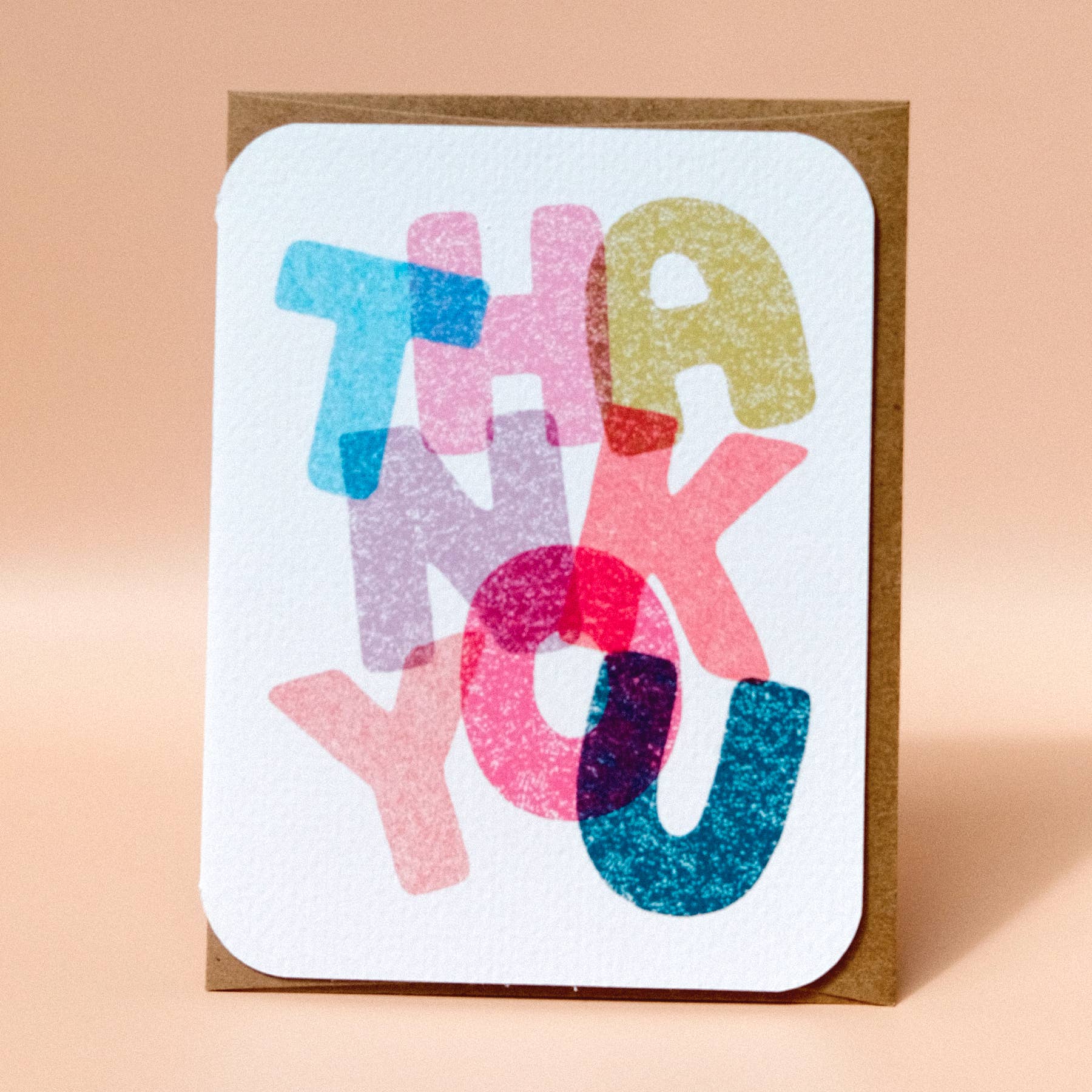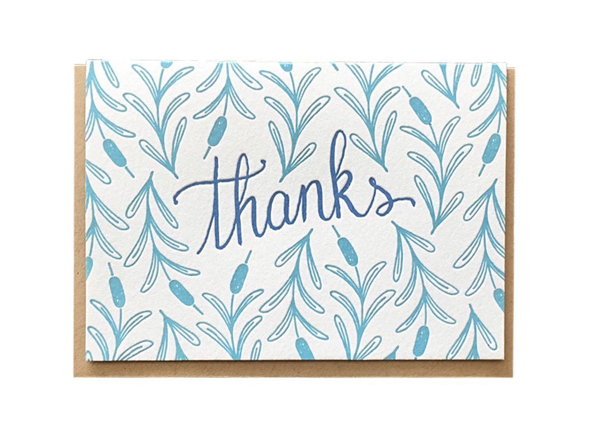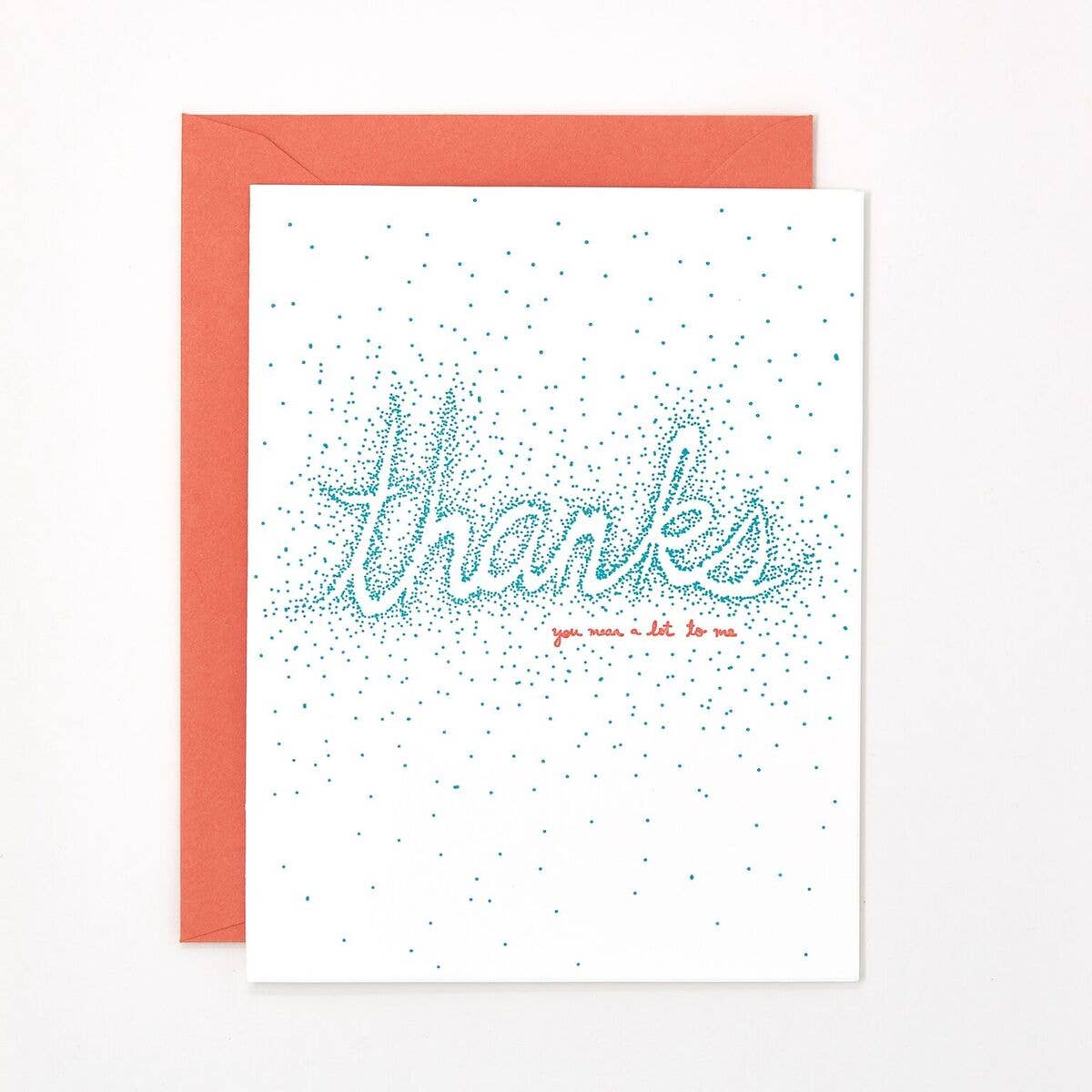 Thanks you mean a lot to me card. Letterpress printed A2, 4.25" x 5.5" single cards. Folded, blank interior, packaged with clear cello sleeve and coordinating envelope.
