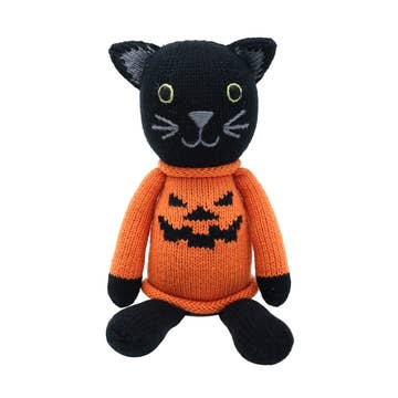 This charming knit cat adds the perfect playful touch to your Halloween assortment. With its soft cotton body, friendly face, and huggable 11" size, it’s more sweet than spooky—making it a hit with families, children, and seasonal gift shoppers alike. Each cat is handmade by women artisans in Lima and rural villages of Peru. Through fair trade partnerships, these makers work in safe environments, earn sustainable wages, and keep traditional knitting techniques alive. Size: 11" tall Material: 100% cotton exterior, polyester filling Care: Hand wash, air dry Handmade & fairly traded Why It Sells: Seasonal favorite for boutiques, children’s stores, and fall gift displays 11" size makes it ideal for gifting and holiday décor Appeals to customers looking for ethically made, heirloom-quality toys Fits seamlessly into Halloween-themed assortments without being scary Stocking this fair trade knit cat brings customers a festive keepsake while directly supporting women artisans and ethical, small-batch production.