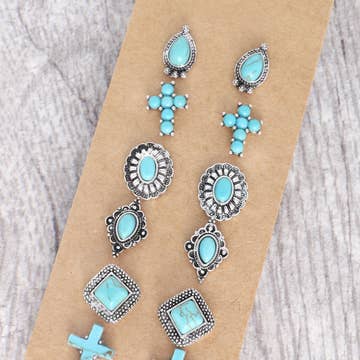 WESTERN RODEO TURQUOISE ASSORTED EARRING SET