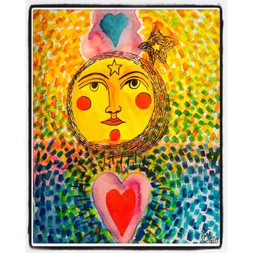 A depiction of a Palestine of abundance in happier times, past and future. A woman wearing a keffiyeh stands with an offering amidst a lush grove of oranges, a representation of the strong connection between the Palestinian people and their land. \n \nThe piece was originally created on a wooden heart-shaped block, amidst Israel's genocidal attacks on Gaza. It was Ricardo's 2024 entry in "Mira Mi Coraz<span class="kY2IgmnCmOGjharHErah">ó</span>n," the annual art fundraiser for El Colegio High School in Minneapolis.