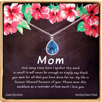 Mothers Day theme necklaces. Each comes individually boxed. Assorted designs and sayings. Pre-Priced $14.99 CARDED OR INDIVIDUALLY BOXED FOR PEG DISPLAYS. COLOR/STYLE ASSORTMENT VARIES. NO RETAIL READY DISPLAY- This product has been liquidated from our wholesale department and will be shipped loose in packs of the specified # in the item name. This product is not used, but packaging may show slight signs of wear from being displayed in stores. DISCOUNTED PRICE ONLY APPLICABLE TO THIS CLOSEOUT ITEM!
