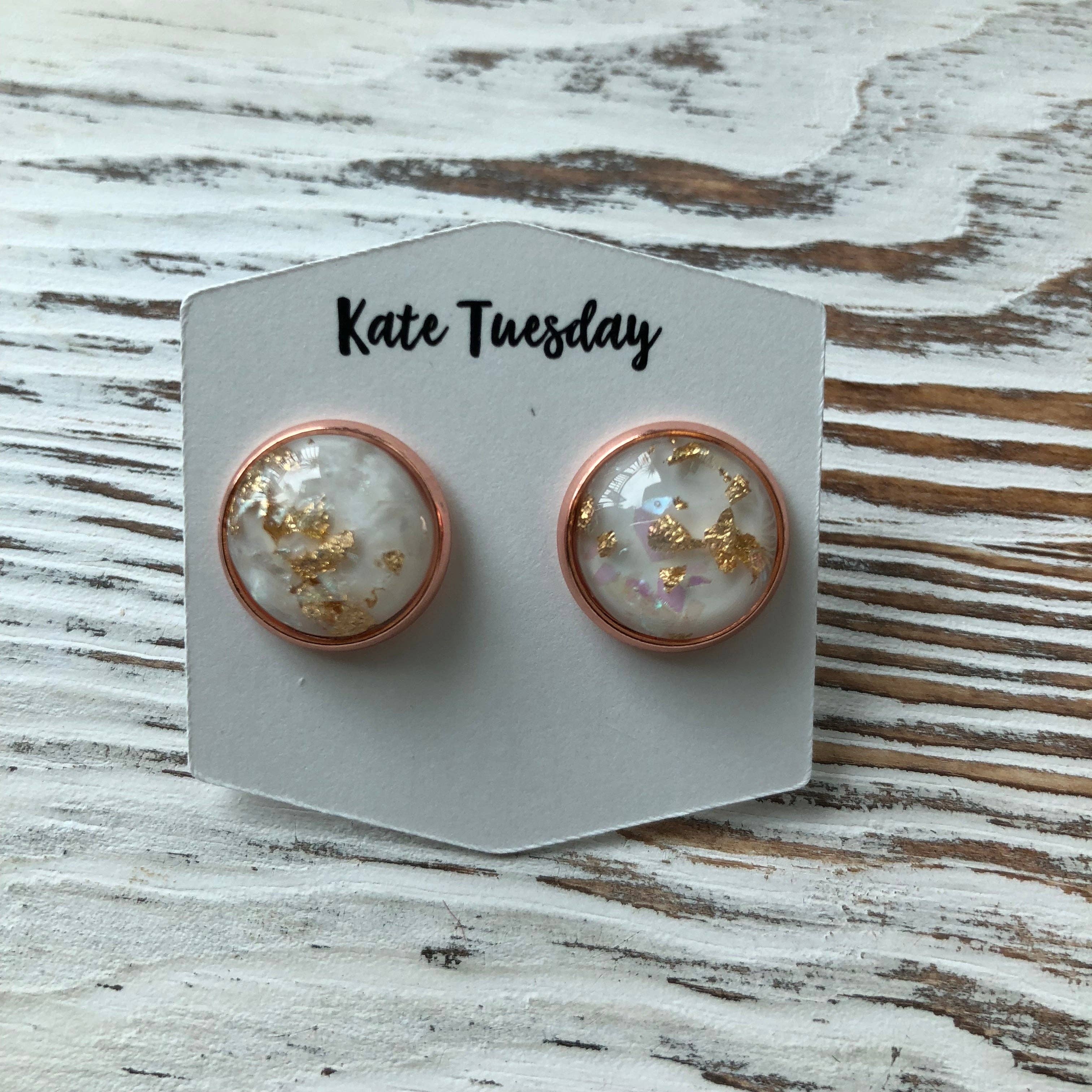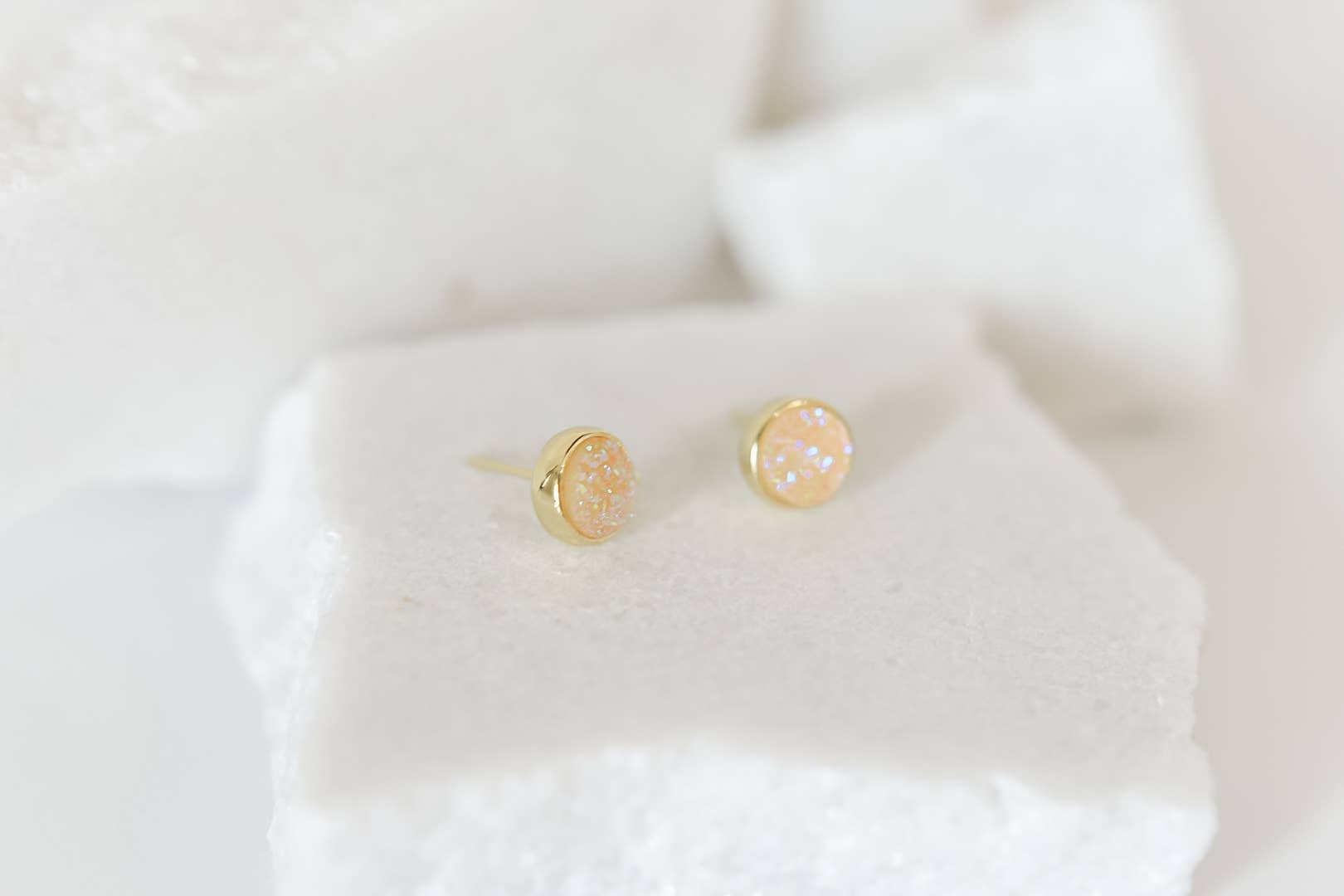 Gold Druzy Quartz Studs Earrings 9MM - Rainbow White